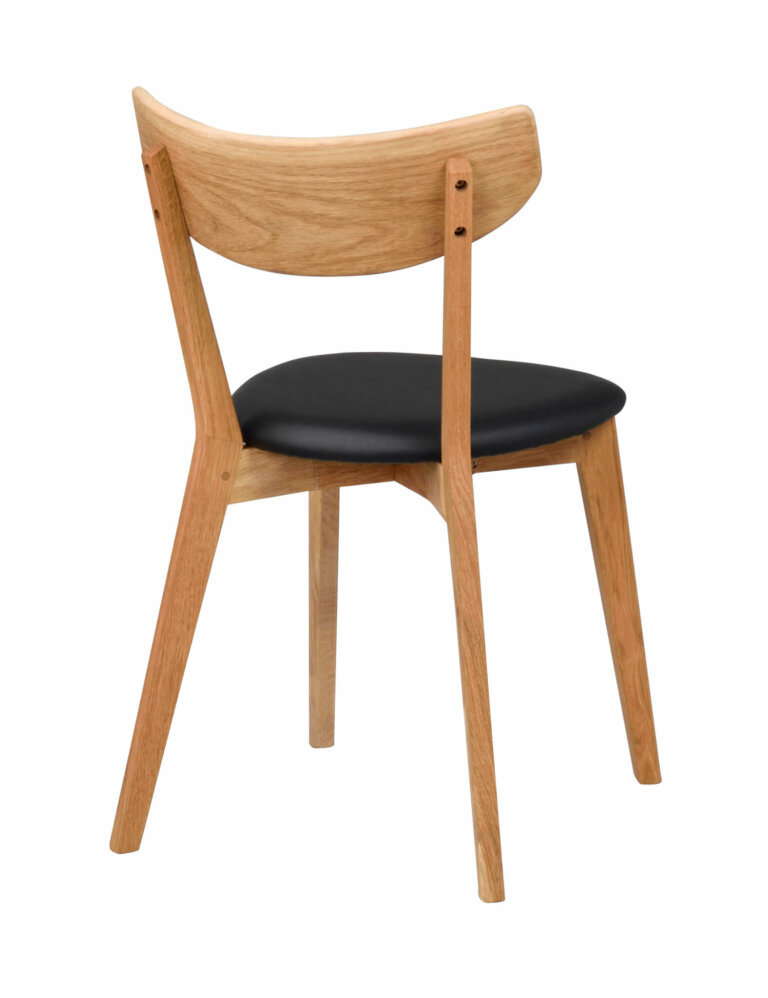 Ami stol i lackad massiv ek med sits i svart konstläder. En klassisk trästol med en behaglig rundad design. Stolen ingår i serien Ami och finns i fler varianter och passar de flesta matbord i nordisk stil.