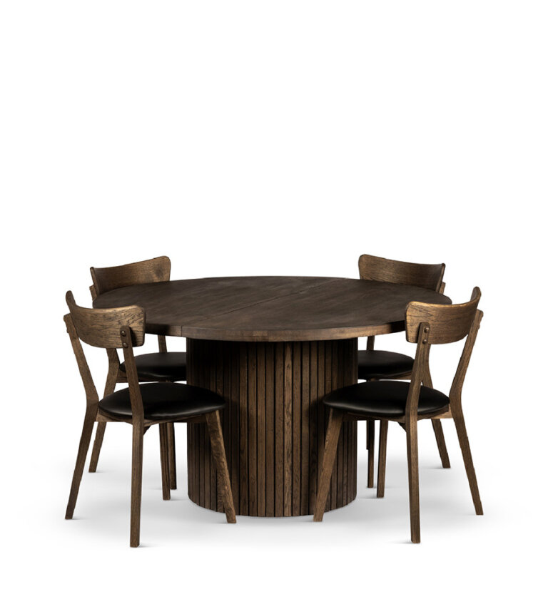 Bremen matbord Ø135cm i rökoljad ek. Bordet går att förlänga med 1-3 iläggsskivor á 50cm. Finns även i vitoljad ek!