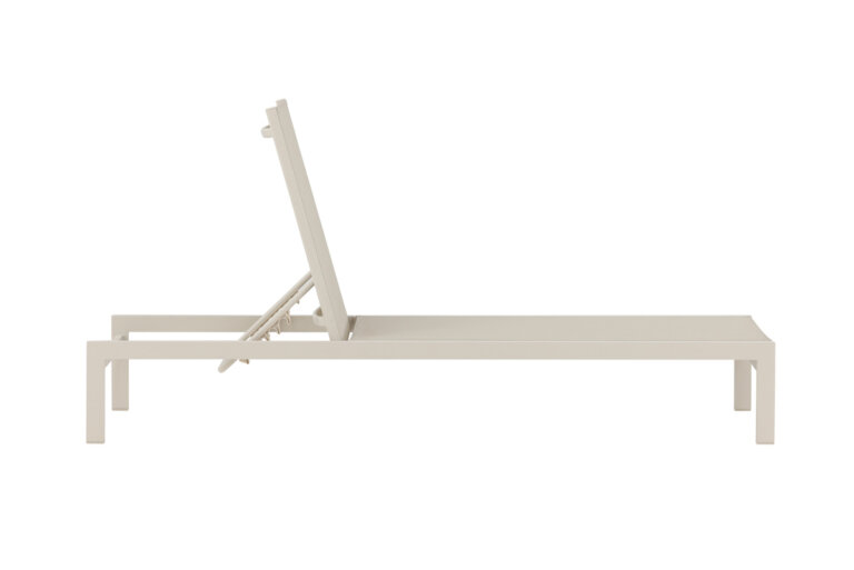 Klassisk solsäng i beige aluminium och textilene. Solsängens ryggstöd går att justera – njut av en skön tupplur eller sitt bekvämt och läs en bra bok!