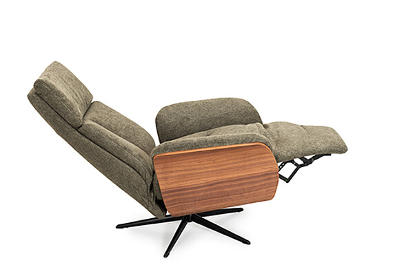 Fåtöljen finns även med elektrisk funktion och i fler storlekar. Välj mellan olika träval på sidorna.