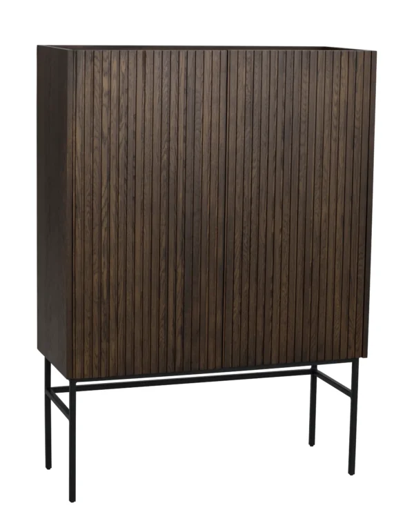 Filippa vitrinskåp är ett stilrent och rymligt skåp i lackad mörkbrun ek med glasdörrar. Mjukstängande låda och dörrar samt flyttbara hyllplan i härdat glas. Vitrinskåpet ingår i vår breda Filippa-serie som även har flera matchande matbord i olika storlekar.