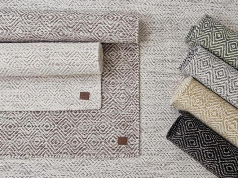 Gåsöga är en serie handvävda ullmattor med ett mönster som går i två färger.
