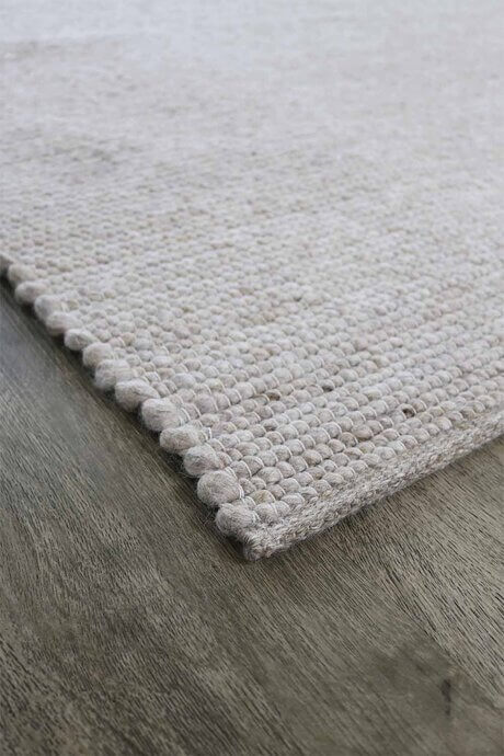 Gotland är en handvävd matta i fin ull. Mattan är vävd i en teknik som ger en grövre struktur med mycket liv. Kortsidorna har en smal vävd kantning medan långsidorna avslutas av en vågig kant som ger en vacker och taktil känsla. En härligt tjock matta som är mjuk och skön att sätta fötterna på. Gotland i färgställning sand har mjukt sand-beige nyanser med en melerad effekt.