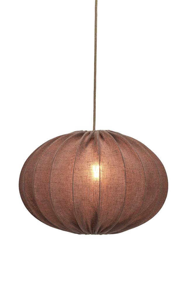 Hilma takskärm i ett linnetyg. Tyget är glest vävt och har en naturligt skrynklig effekt vilket skapar karaktär åt lampan.
