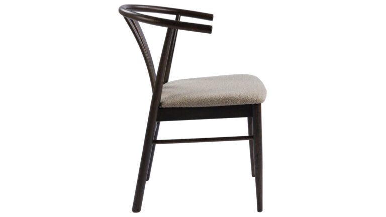 Jive stol i lackad mörkbrun ek med en grå/beige sittdyna.
