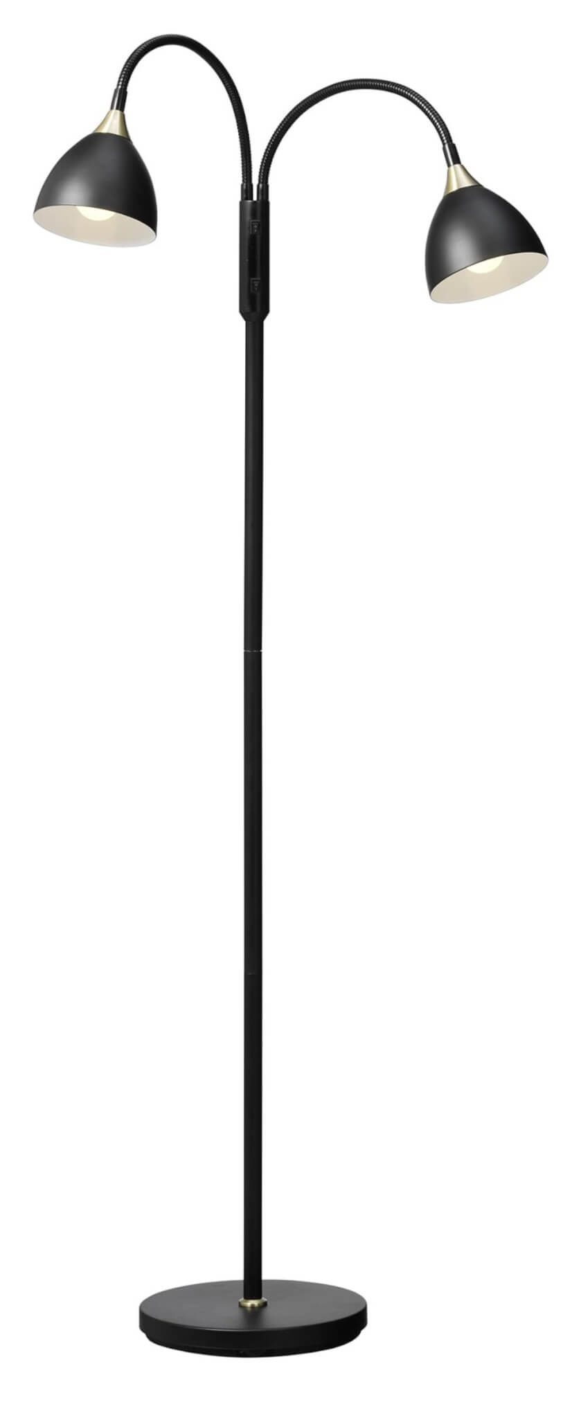 Svart med borstad mässing detaljer.