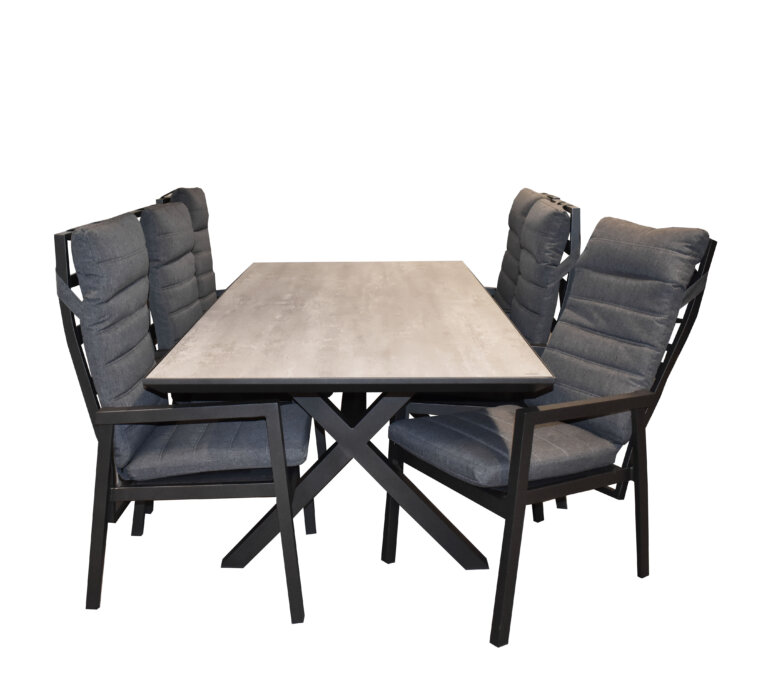 Justerbar karmstol i svart aluminium med extra kraftig dyna för bästa sittkomfort.