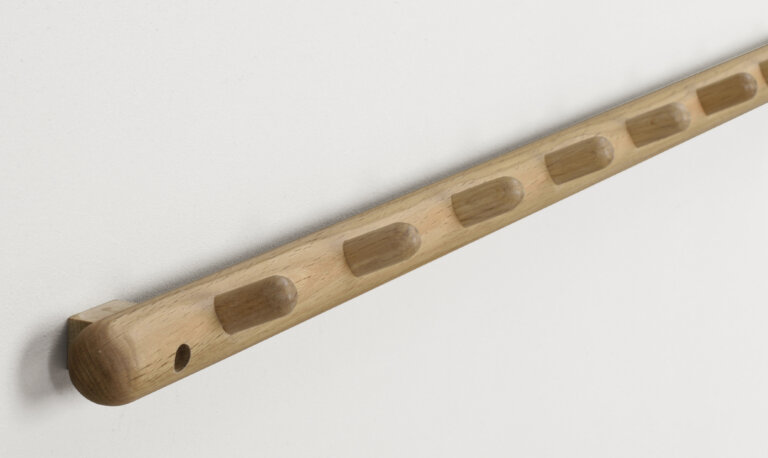 Milford kroklist i lackad massiv ek. En stilsäker och tålig kroklist med 8 st hängare. Milford hallserie finns i flera färgställningar och är designad av oss på Rowico.
