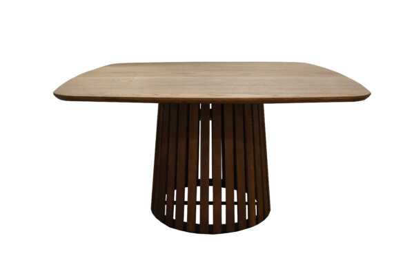 Bordsskivan är i massiv ek och dessa produkter har ett rustik utseende.