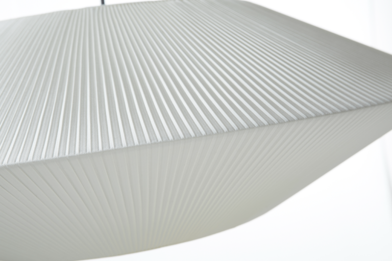 En elegant och modern taklampskärm som kan kombineras med något av våra många takupphäng. Skärmens tyg är fint och jämt plisserat över hela skärmen. Detta är en lampskärm som passar i flera olika rum men den är perfekt att sätta över ett matbord. Den ger bra avbländning men sprider samtidigt mycket ljus över bordsytan tack vare sin stora öppning nedåt. Inkl. upphäng.