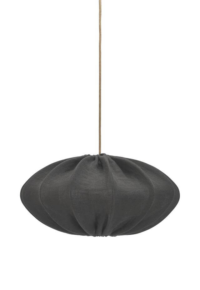 Rosa takskärm i ett linnetyg. Tyget är glest vävt och har en naturligt skrynklig effekt vilket skapar karaktär åt lampan.