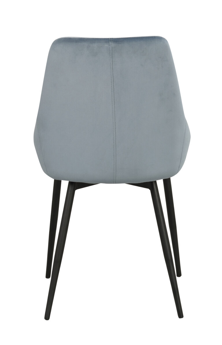 Vår populära Sierra stol i modern design med skön sittkomfort. Stolen finns i flera olika färger och passar perfekt i våra skandinaviska hem. Här syns den med sits i blått sammetstyg. Tyget har hög slitagenivå och stolen har tåliga ben i svart pulverlackad metall. Sierra stol passar utmärkt runt matbordet men även som udda stol i hallen, sovrummet eller till skrivbordet.
